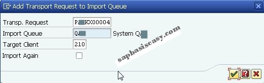4. Add one-by-one all the Transport Requests number generated from Client Export.