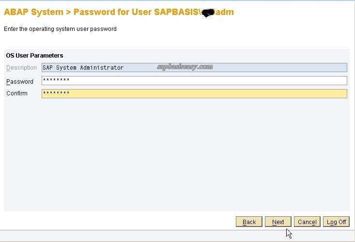 11.You’ll be asked for SAP Admin user and Password. Enter with the username and correct password.